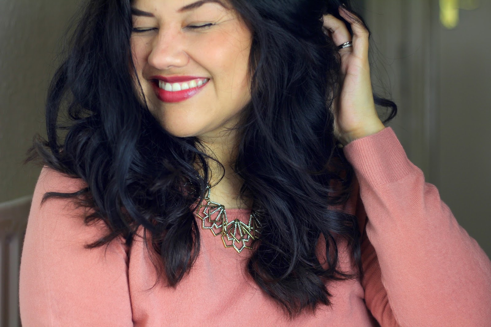 I ended up pairing it with this sweater... I'm currently obsessed with this color which is a mix between rouge and rosewood. It's the perfect way to do pink in Fall...amirite? I'm wearing this tonight to a Christmas Kickoff event in Manchester. It's going to be a festive event with live music and fireworks so I figured I needed some sparkle. This necklace is perfect for it!